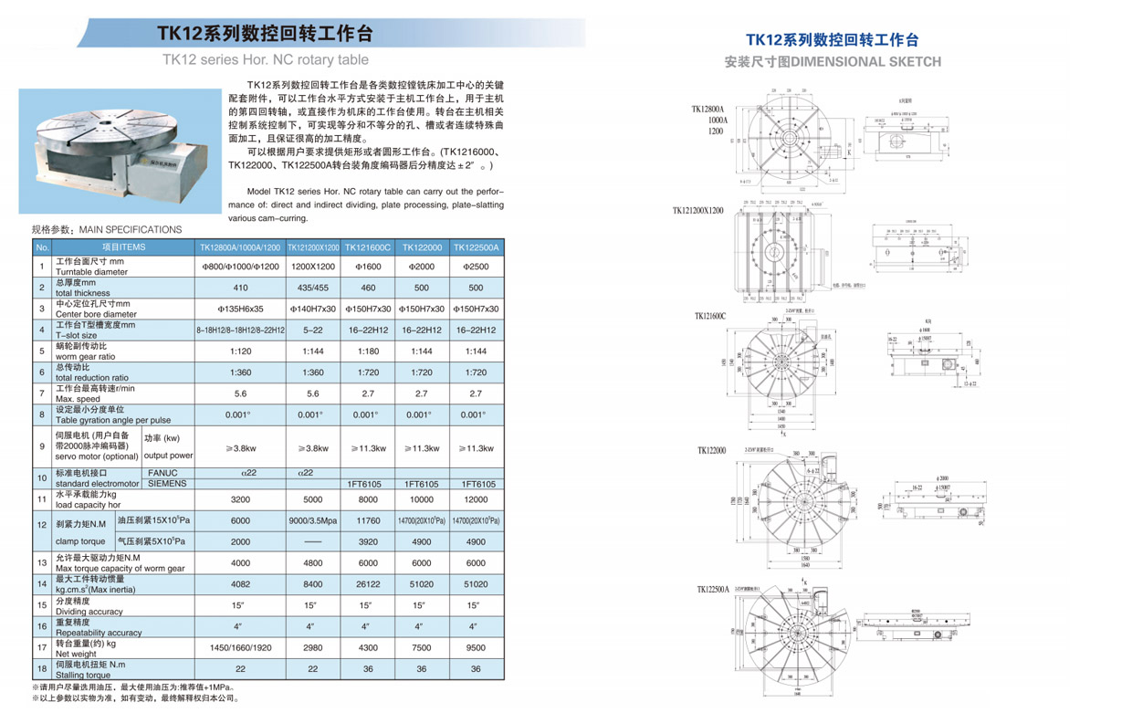 TK12系列(liè)數控回轉工(gong)作台