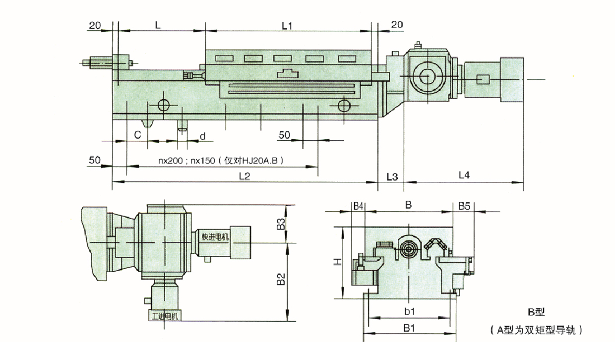 本(ben)系列滑台(tai)分A型、B型。A型(xíng)爲雙矩型(xing)導軌,爲單(dan)導軌導向(xiang)❌,一般用✌️于(yú)粗加工,如(ru)鑽床、銑床(chuang)、帶有導套(tao)的镗床等(deng)。B型爲一山(shān)一矩組合(he)型✍️導軌,用(yong)于精加工(gōng)機床,如采(cǎi)用剛性主(zhu)軸的镗床(chuáng),镗孔車端(duan)面機床等(deng)。